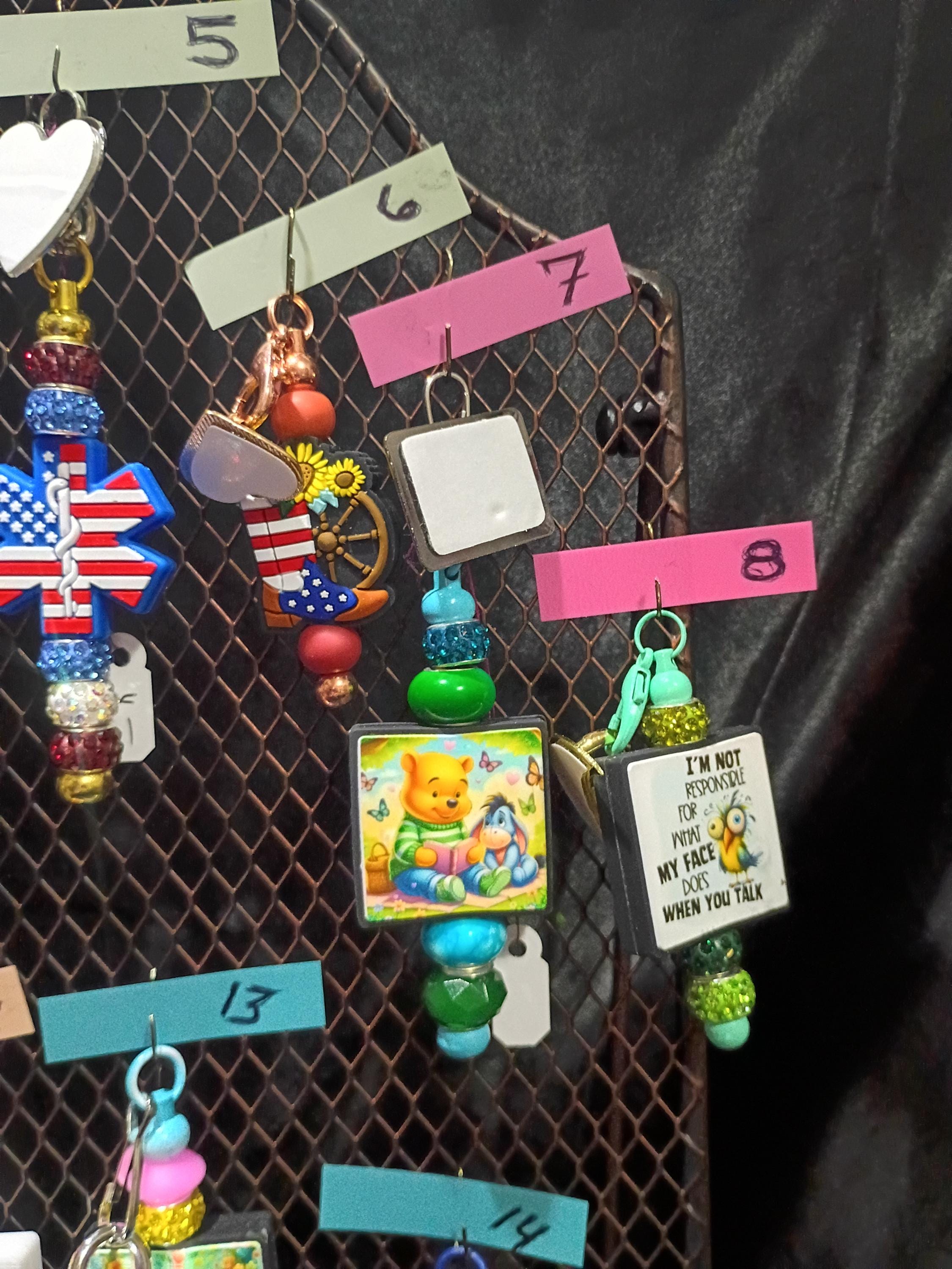 Different shaped stickers with a halfmoon shaped hook on them allow for the claps or keychain hooks to clip right on. They latch right on and away you go. These stick to your phone back or case, car rear view mirrors or any where. Notebooks for school or journaling, and anywhere your parents wont yell at you for it, these places willl never be the same. Plus, you are able to swap and switch any time you want. So you can accessorize and swap with bestie or family, your favorite sports team for the big game party, as it hangs off the back of your cell phone, which we all know, hangs out the back pocket of your jeans. LOL. And your bestie, oooo, she got that fire! Lets trade for a day.